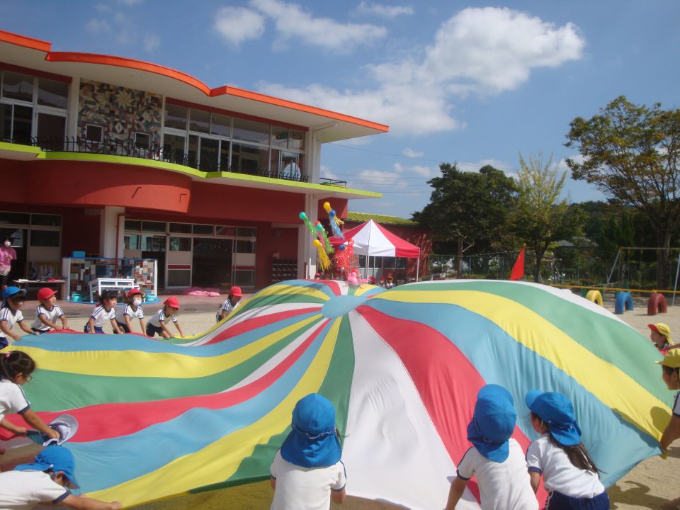 本宿幼稚園のスローガンは「わくわく!となかよし。」 たくさんの友だちとかかわりあいながら、自分で考え、元気にかけまわり、発見、感動、心を動かす経験をします。